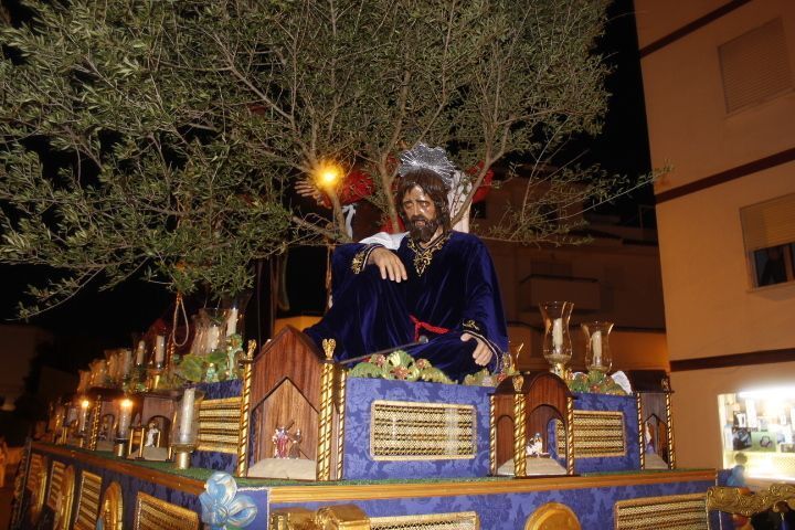 A las seis de la tarde, tras un breve acto de hermanamiento entre esta asociación roteña "Huerto de los Olivos", y la asociación cofrade jerezana "Humildad y Juventud", salía de una nave del polígono industrial el cortejo que durante varias horas, hasta pasadas las once y media de la noche, recorrió varias calles de Rota, especialmente, las de la zona norte donde esta entidad cultural se vuelca para que vecinos que por determinadas circunstancias no pueden bajar a la zona centro para ver la Semana Santa, vivan algo de ambiente cofrade en sus barrios.