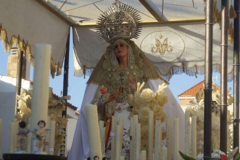 Un detalle que la asociación "Huerto de los Olivos" quiso tener ayer de nuevo en su salida procesional con el piloto Marcos Garrido, fallecido el pasado 24 de marzo a sus 14 años en un accidente de motos durante una competición en el Circuito de Jerez-Ángel Nieto, fue que la virgen llevara en su mano una pequeña moto recordando la pasión de este joven roteño cuya vida terminó demasiado pronto. Y es que Marcos Garrido, había participado alguna vez en las salidas que organiza esta asociación el Viernes de Dolores de ahí, su relación. La asociación tuvo un detalle con la abuela de Marcos, entregándole la moto como detalle y dedicaron una levantá en recuerdo del piloto.