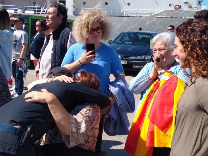 En el puerto de la Base Naval, algunos familiares de los tripulantes les dieron la bienvenida de vuelta a casa.