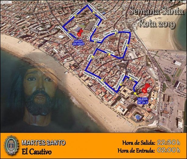 El Martes Santo llega a Rota y con él, la salida de Nuestro Padre Jesús Cautivo que a las 22.30 horas partirá desde la parroquia de Nuestra Señora de la O. Para facilitar la estación de penitencia, y como viene haciendo estos días, la Policía Local indica información de interés para los conductores de cara a este 16 de abril.