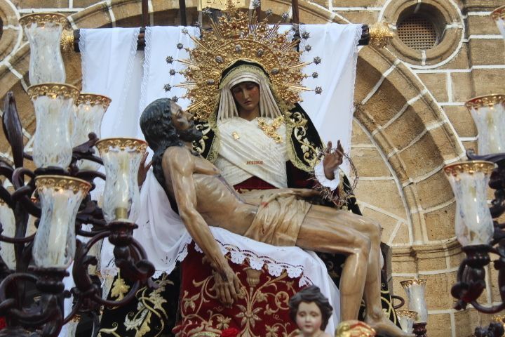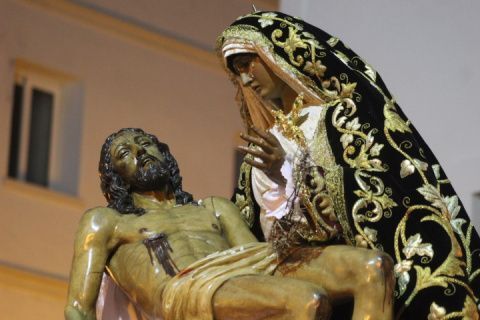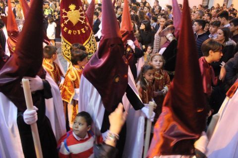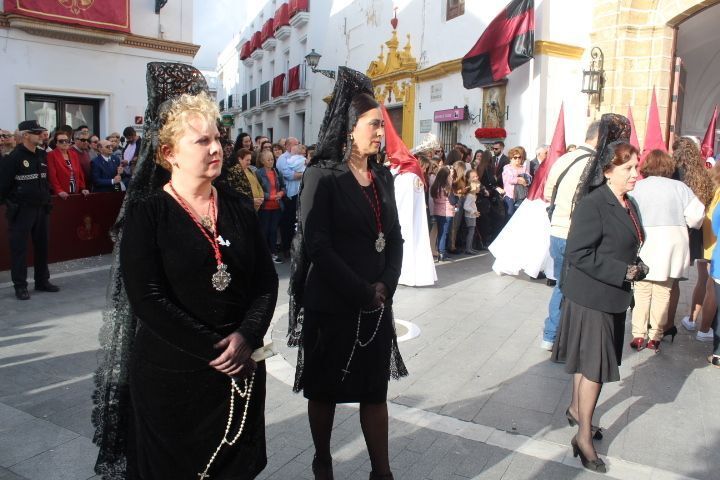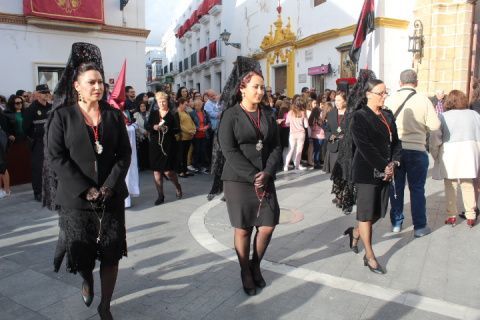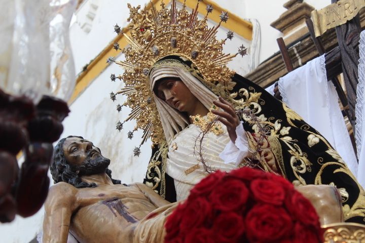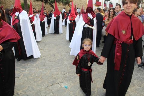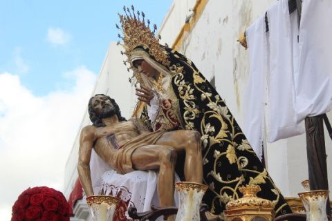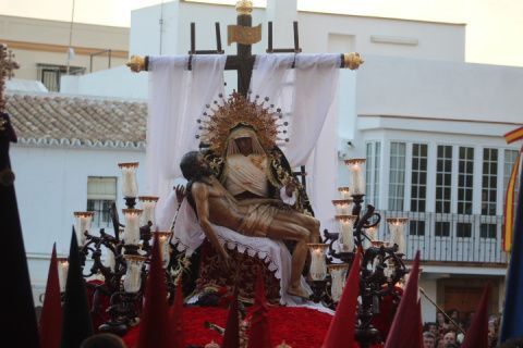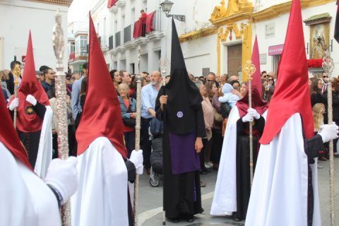 Para la Hermandad de los Dolores ha sido una tarde triste en la que pese a que quisieron que la virgen estuviera en la calle luciendo con su hijo en el regazo, no fue del todo posible. Solo dos horas de estación de penitencia que supieron a poco a los hermanos, a los costaleros y al público en general. Aún así, por cada calle que pasó en su breve salida procesional, esta hermandad con casi 200 hermanos en el cortejo, estuvo arropada por mucho público. Su capataz, Pedro Merino y la banda de música de Nuestro Padre Jesús Nazareno se emplearon a fondo sabiendo que quizás la dicha duraría poco como así fue.