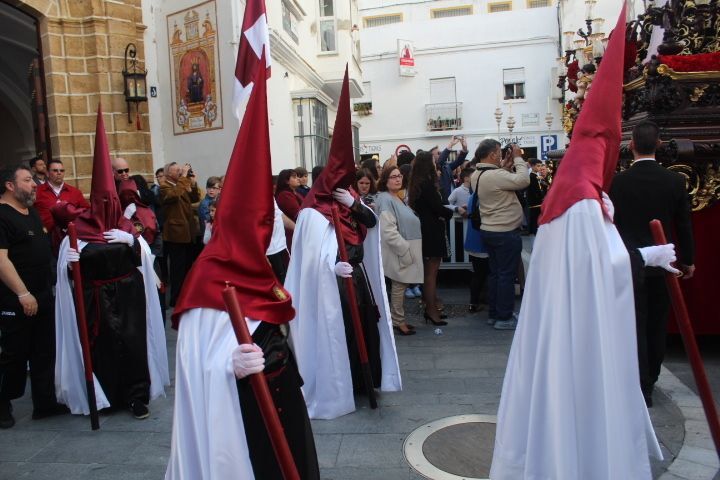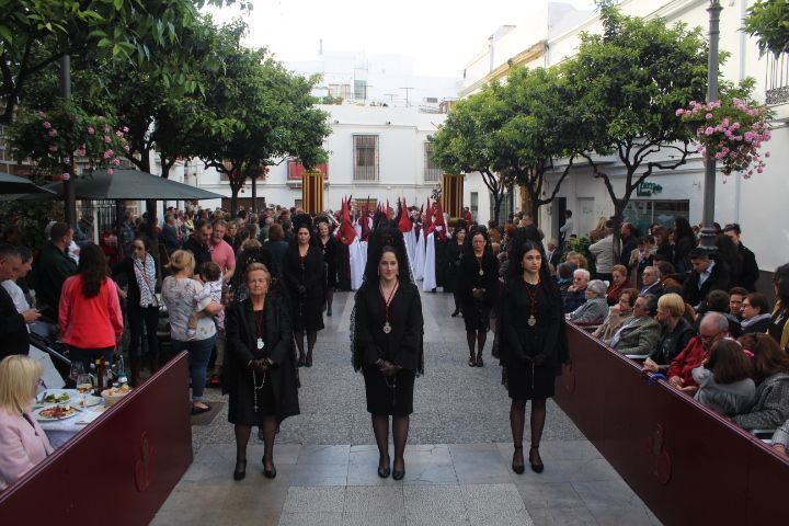 Los roteños tampoco han podido vivir un Jueves Santo pleno pese a que la Hermandad de Nuestra Señora de los Dolores barajó las alternativas posibles para poder salir a la calle. Con la decisión tomada de que acortarían recorrido para recogerse antes y no quedarse en capilla, puesto que la previsión era que llovería sobre las 23.30 horas, a las siete de la tarde iniciaban la salida procesional. Lo hacían eliminando algunas calles del itinerario inicial para ganar tiempo y poder estar antes de vuelta pero con la satisfacción de darle al Jueves Santo el ambiente cofrade que merece, sin embargo, la aparición repentina de una nube sobre las 9 de la noche, que descargó en pocos minutos algunas gotas de agua, hizo que la junta de gobierno no quisiera arriesgar más y a las dos horas de esta en la calle se volvieron a capilla.