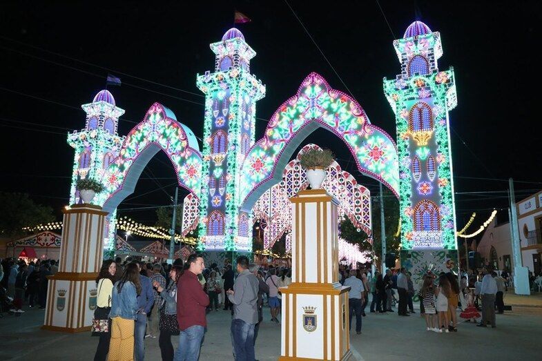 Las oportunas fotos de recuerdo con la portada ya iluminada fueron el punto y seguido para seguir disfrutando de más horas de Feria de Primavera pese a que hoy jueves 2 de mayo, era día laborable, por lo que a medida que fue avanzando la noche también se fue reduciendo el número de roteños y visitantes en las casetas.