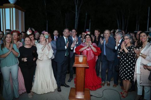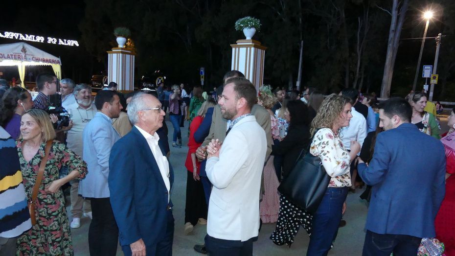 Con varias horas ya de convivencia, de encuentros con amigos y alguna copa para brindar, la Corporación municipal se volvió a reunir en la noche del miércoles para proceder al encendido del alumbrado extraordinario ya que aunque la inauguración oficial tuvo lugar por la mañana, aún quedaba ver el Real iluminado por miles de bombillas que dan color a las diferentes calles de un recinto acondicionado para acoger a más de una treintena de casetas entre fijas y portátiles que permiten que los ciudadanos disfruten del ambiente y la música propia de esta celebración.
