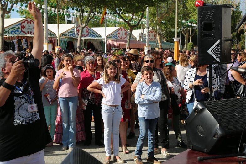 Un momento destacado de la jornada se vivió con cientos de personas en la calle principal del recinto ferial que se congregaron para bailar por un lado y para ser espectadores de esta novedad por otro. Como ya anunciara la delegación de Igualdad, este año se proponía a las cuatro academias de baile con las que cuenta Rota una coreografía común para bailarla a la vez y dar protagonismo a la presencia de la mujer. Fue un momento especial que vivieron especialmente las pequeñas bailaoras nerviosas porque todo saliera como habían ensayado. Con la canción de Dorantes, "Orobroy", consiguieron reunir en el Real a muchas personas que vieron la implicación de las bailaoras de las escuelas de Laura Pirri, Ofelia Márquez, Rocío Sánchez y "Puro flamenco" a quienes la delegada Esther García agradeció el esfuerzo que habían puesto a la hora de ensayar con sus alumnas este 'flashmob' que dio un color especial a la tarde. Con las representantes de las academias se tuvo un detalle entregándoles una calabaza muy flamenca, con lunares, a modo de recuerdo por su participación.