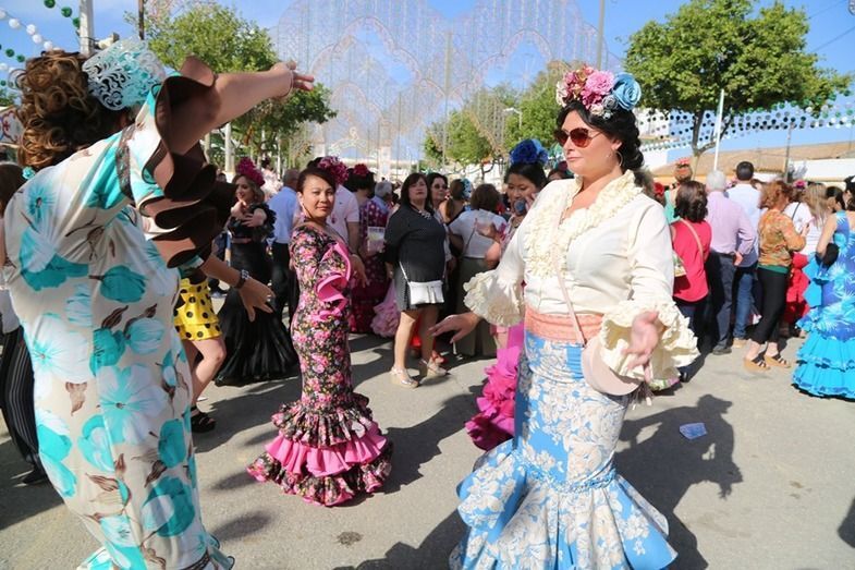 Las mujeres fueron parte protagonista en el día de ayer en la Feria de Primavera, no en vano, era una jornada dedicada a ellas y así se notó prácticamente desde principios del mediodía cuando muchas casetas reunían a grupos de mujeres para compartir un almuerzo de convivencia. A ello se sumaba la comida de la delegación de Igualdad, también dedicada a la mujer aunque con la participación de hombres, y el 'flashmob' que tuvo lugar sobre las seis de la tarde en pleno Real de la feria.