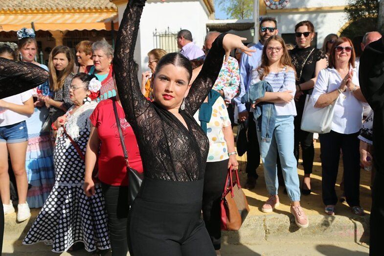 Tras esta coreografía conjunta, fue la cantante Rocío Ruiz la que tomó el testigo con el cante por sevillanas que animó a muchos de los presentes a marcarse un baile viviendo el Real uno de los momentos con mayor ambiente de la tarde.