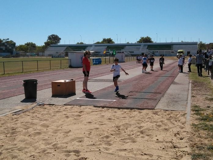 En total, esta mañana por las instalaciones deportivas del recinto ferial han pasado 350 escolares que gracias a la colaboración de clubes deportivos que ayudan a la delegación de Deportes han propiciado la práctica del tenis, ajedrez, atletismo, bádminton, baloncesto o fútbol sala. Una oportunidad además, para compartir una jornada de convivencia con otros compañeros de diferentes centros educativos.