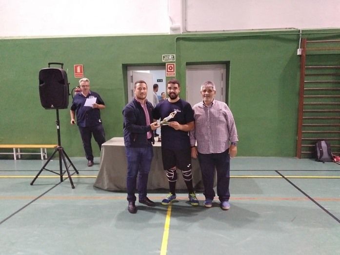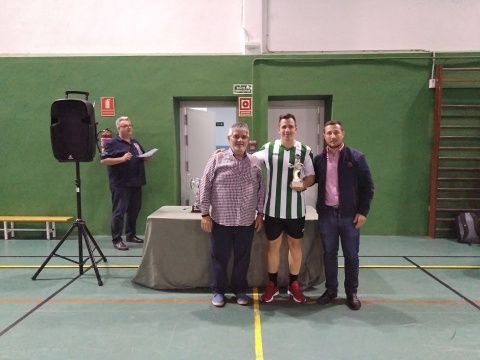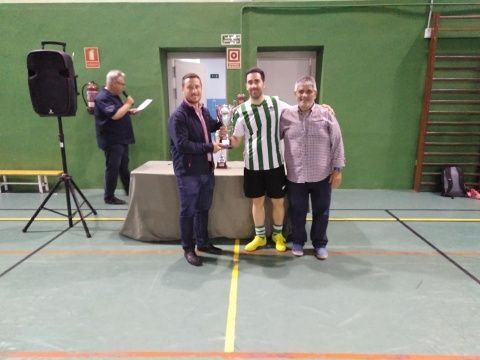 El delegado municipal de Deportes, José Antonio Medina Sánchez, participó en la entrega de trofeos de esta Liga Local de Fútbol Sala para adultos que impulsa la Asociación Local Alx Porteros con la colaboración de la delegación municipal de Deportes.
