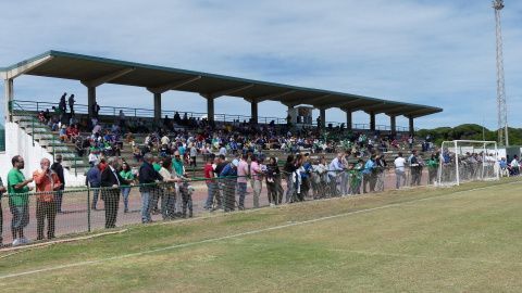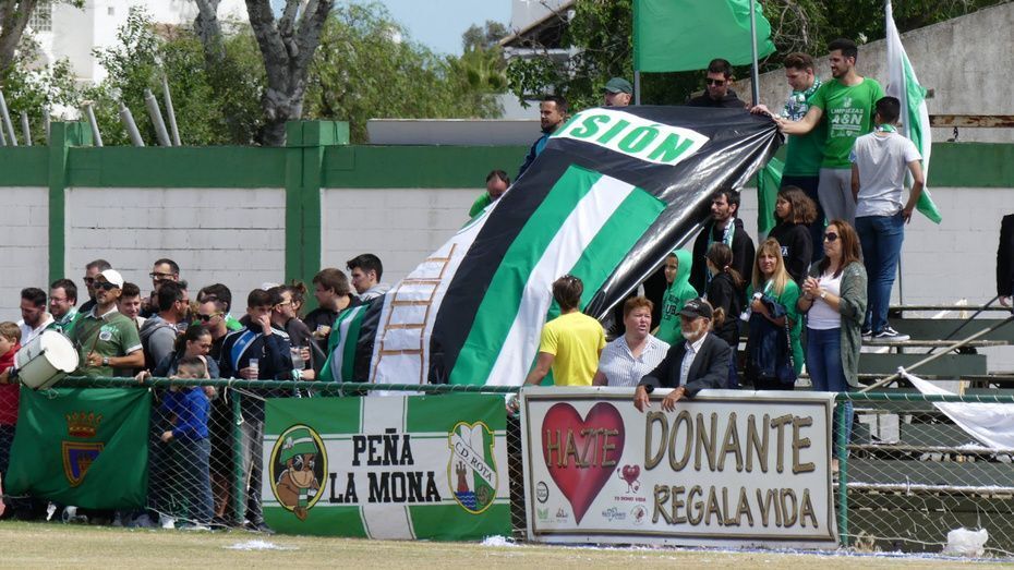 [Img #114053]La afición verderona acudía al campo con la ilusión de poder celebrar este ascenso en vivo en un partido que registró un número mayor de aficionados de lo habitual, donde también se dejaron ver muchos políticos locales, entre ellos el alcalde de Rota, Javier Ruiz, que quisieron estar presentes en esta importante jornada para el club local. Pese al gran número de aficionados, la ubicación que tiene actualmente el terreno de juego no permite que el equipo sienta el calor de la afición de forma tan directa, un problema que el club lleva sufriendo varios años y que son muchos los aficionados que piden que el campo vuelva a su posición original. Aún así, la afición se volcó.