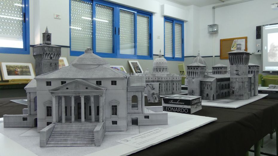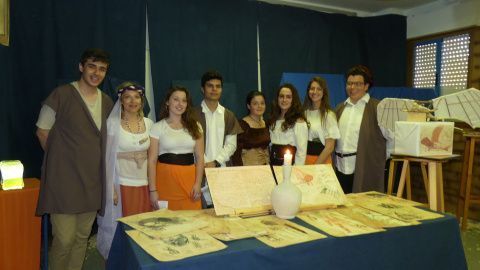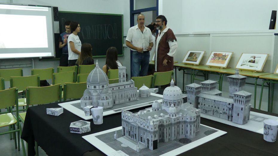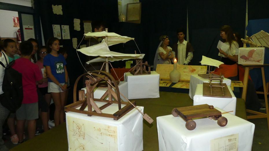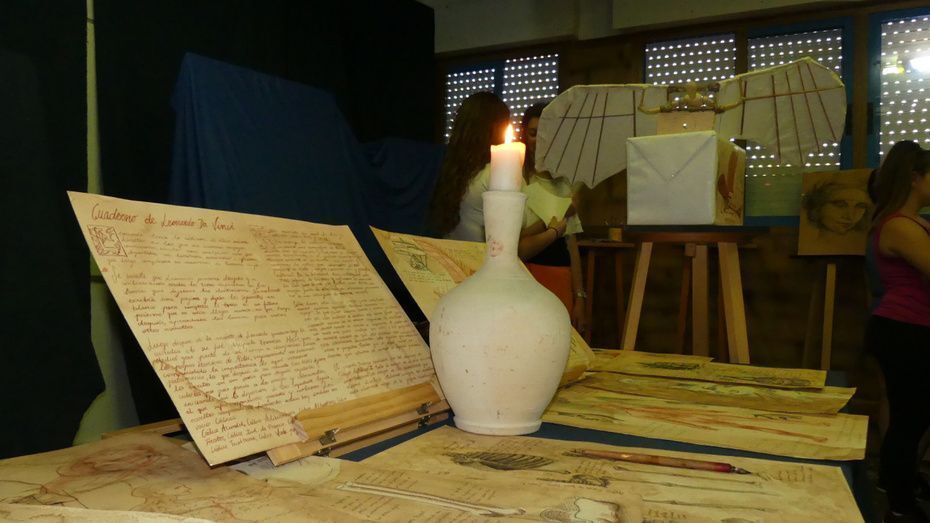 Cada departamento, de Lengua, Inglés, Artes Plásticas, Música, Literatura, Ciencias, Matemáticas, etc., se ha empleado a fondo y hoy se podía ver el resultado. Entrar en el IES Castillo de Luna esta mañana ya dejaba pistas. Un mercado en el que se vendía comida, previo cambio de euros a reales -dinero recaudado que se destinará a Cáritas-, música de ese periodo interpretada por alumnos, la recreación con poliespan de la balaustrada del Castillo de Luna, paneles sobre fórmulas matemáticas y matemáticos de la época, talleres donde se imprimían partituras de música originales de la época con planchas que han elaborado los propios alumnos, el taller de Leonardo Da Vinci en el que se hacía un recorrido por su historia e inventos; un planetario con proyecciones y explicaciones sobre la creencia de aquel entonces; la confección de un herbario que los propios alumnos han realizado, una exposición de inventos que a día de hoy funcionan todavía, maquetas de edificios emblemáticos e incluso un corral de la comedia se han podido ver esta mañana en unas visitas guiadas donde los alumnos que han trabajado cada proyecto han enseñado las conclusiones y resultado final al resto de compañeros. Además, en este "Día del centro", el IES Castillo de Luna también ha recibido la visita de otros alumnos, de los colegios Maestro Eduardo Lobillo y de Pedro Antonio de Alarcón, que han podido ver el trabajo hecho por casi un centenar de estudiantes que han llevado la voz cantante en este día dedicado al propio instituto. La mañana terminaba con una partida de ajedrez donde las piezas eran los propios alumnos.