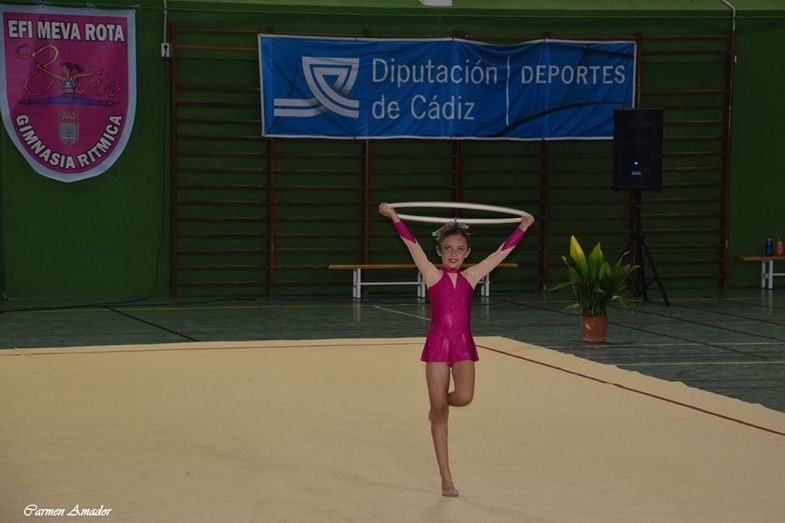Las alumnas de gimnasia rítmica de la EFI Meva despidieron el curso con los XVI Juegos Municipales de Gimnasia Rítmica que se celebraron el pasado miércoles por la tarde en el polideportivo "Antonio Barrientos Chispa" hasta donde se acercaron muchos familiares de las gimnastas para ver su actuación.