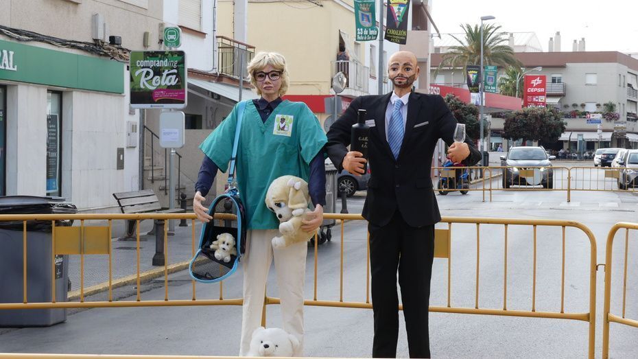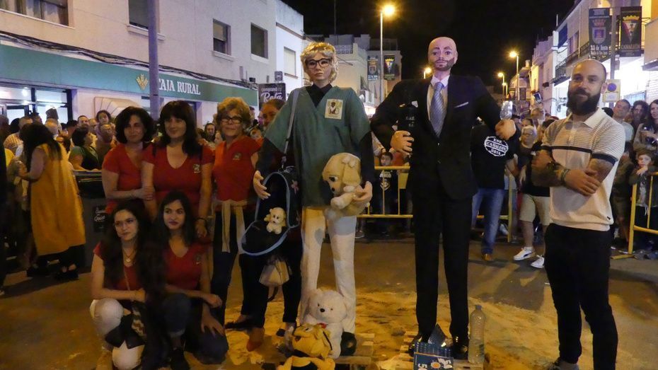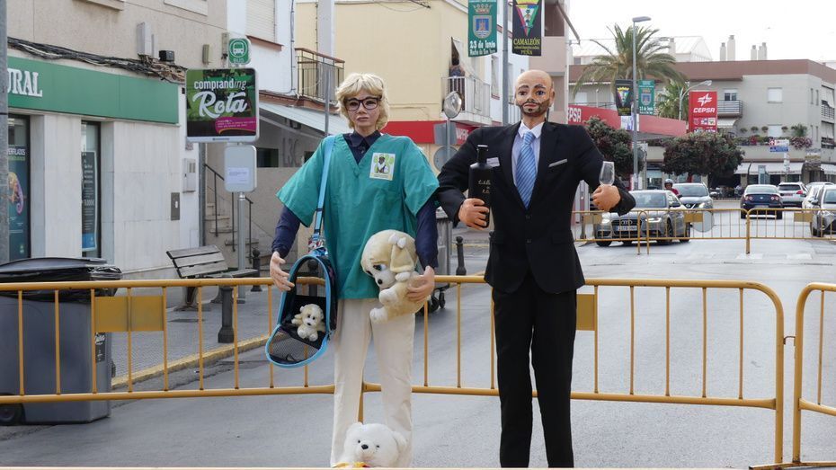 Minutos antes de la medianoche, los homenajeados fueron los encargados de prender fuego a los muñecos que los representaban. En el caso de la peña cadista "El Camaleón" fue la presidenta de la protectora de animales "Siempre Contigo", Carmen Santos, que en realidad representaba a todo el equipo de esta asociación que trabaja por los perros abandonados en Rota, y el sumiller Juan Ruiz-Henestrosa, varias veces galardonado por su trayectoria profesional en el restaurante de Ángel León, "Aponiente" y por su promoción de los vinos de la tierra. Ambos se pudieron fotografiar junto a sus muñecos y recibir además el homenaje de la peña cadista con sendas placas.
