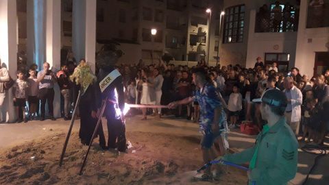 La quema de "juanillos" logra reunir a cientos de ciudadanos en la noche de San Juan