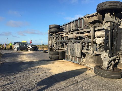 Según los primeros indicios, parece que el vehículo habría impactado de forma lateral contra el camión que ha volcado al maniobrar para esquivar al coche, quedando cerca de la cuneta, mientras que el coche se ha quedado en medio de la vía. El conductor del turismo se quejaba de un fuerte dolor en el pecho por lo que Protección Civil, activada por el 112, se ha encargado de atenderlo en primera instancia llegando los servicios sanitarios (DECU) que han sido los que han trasladado al herido al hospital de El Puerto de Santa María para una atención médica más exacta. El ocupante del camión, en principio, no presentaba heridas.