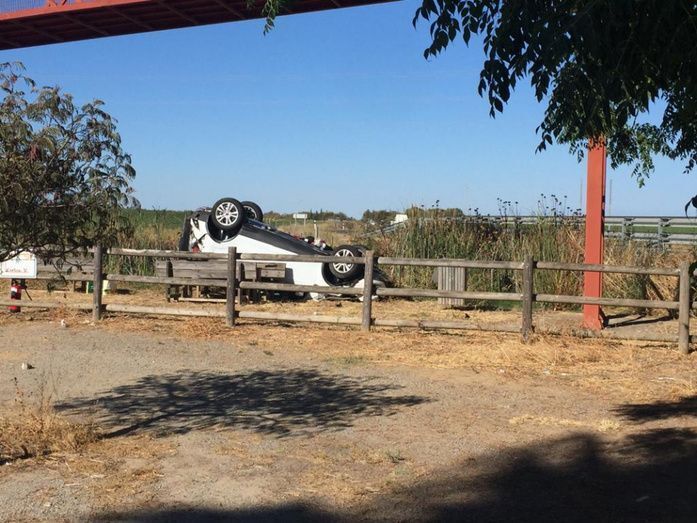 En la tarde de ayer martes 25 de junio, se produjo un accidente de tráfico donde solo se vio involucrado un turismo que volcó tras haber literalmente volado unos 20 metros.