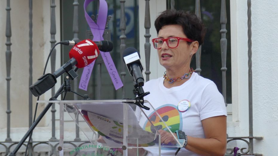 El año pasado fue Manuel Mateo Laynez el padrino de este 28 de junio, y este año, era la persona que pasaba el testigo a su amiga Sonia, una mujer, lesbiana, profesora, que ha vivido su orientación sexual siempre con libertad y coherencia, aspectos que anoche la llevaron a ser parte protagonista de una jornada en la que defendió la normalidad ante todo. Esta roteña mostró su orgullo por haber sido elegida para este cometido, agradeciendo a su amiga Carmen Zurita, referente en la lucha de los derechos LGTBI, que la propusiera y agradeciendo a la delegación de Diversidad y en concreto a la anterior delegada Esther García, su trabajo de los últimos cuatros años.
