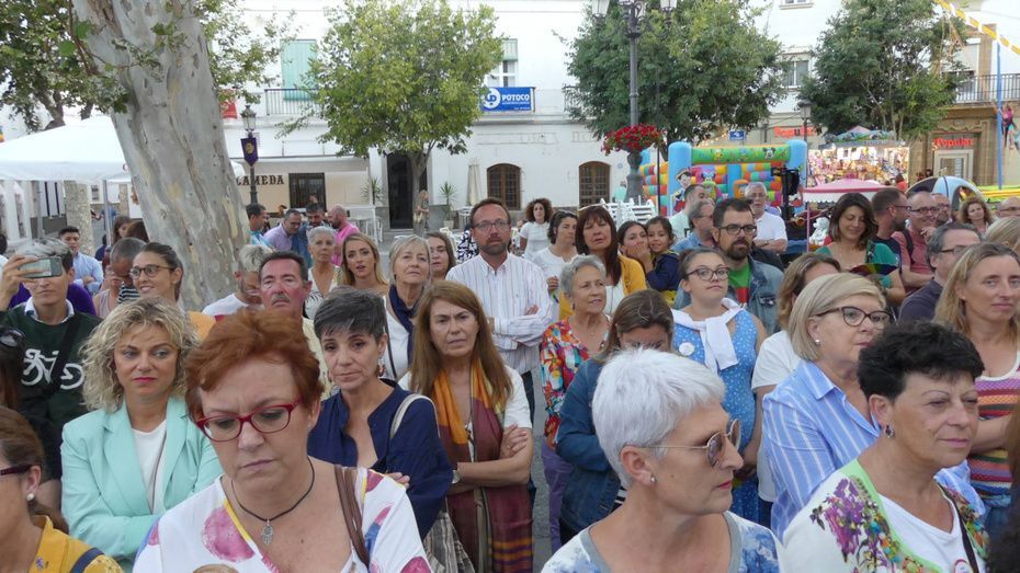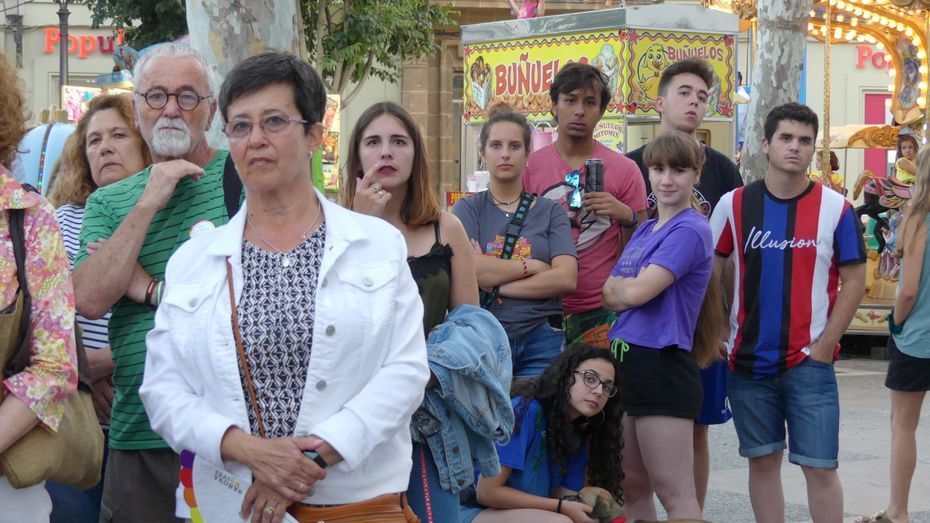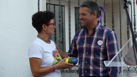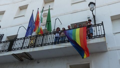 Con el reparto entre los presentes de abanicos y chapas alusivas al Día Internacional del Orgullo, comenzaba este acto amadrinado este año por la roteña Sonia Martín-Niño Bernal que fue, junto a otras compañeras, la encargada de deslizar la bandera identificativa del colectivo gay desde el balcón del antiguo ayuntamiento.