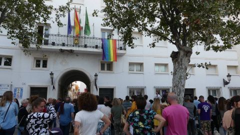 El acto terminó con la iluminación del balcón del antiguo Ayuntamiento en la plaza de España, con los colores de la bandera del arcoíris.