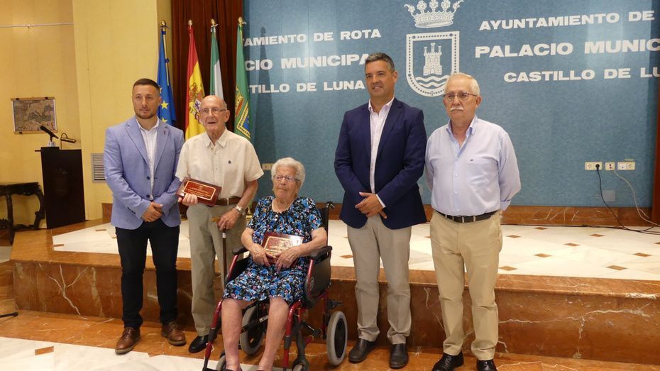 Los abuelos roteños Álvaro Palomares y Matilde Alcedo han recibido esta mañana un homenaje por ser los abuelos más longevos de la localidad. Un reconocimiento que se entrega desde el Ayuntamiento de Rota que de este modo, quiere poner en valor la importancia de la figura de los mayores en la sociedad, el papel fundamental que tienen en el seno de muchas familias y la necesidad de seguir reivindicando su sabiduría.