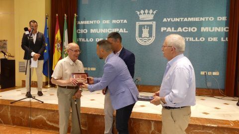 [Img #119012]Era el alcalde de Rota, Javier Ruiz, el que imponía a ambos el pin del Ayuntamiento y se entregaba por parte del delegado del Mayor una placa de recuerdo. El presidente de la Junta de Mayores, Javier Pico de Coaña por su parte, le entrega una copia del vídeo que se ha elaborado por el propio Ayuntamiento para este día en el que ambos han resumido parte de sus vidas.  Los dos abuelos homenajeados en 2019 han coincidido en las dificultades pasadas y en lo difícil que fue salir adelante. Precisamente, este Día del Abuelo, que como el propio alcalde dijo, es importante para este gobierno, viene a reforzar esa fortaleza que generaciones anteriores demostraron ante tanta adversidad con una guerra de por medio.