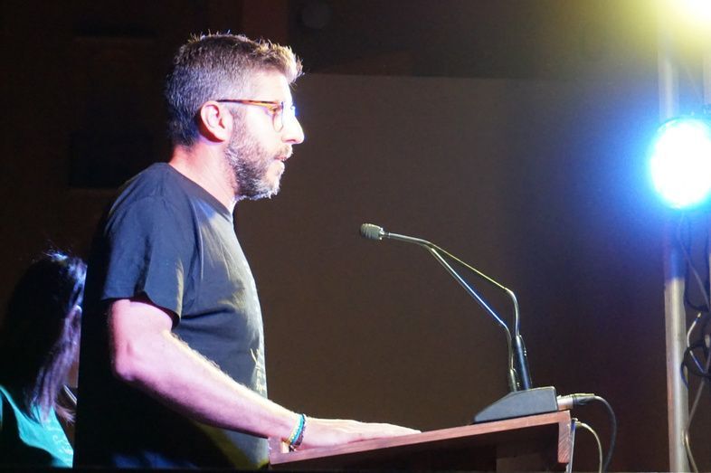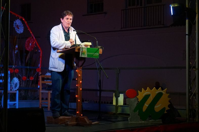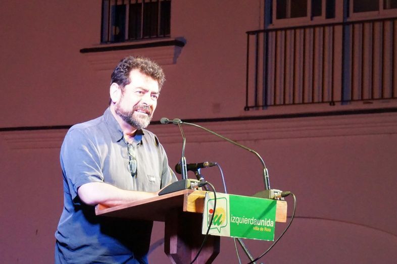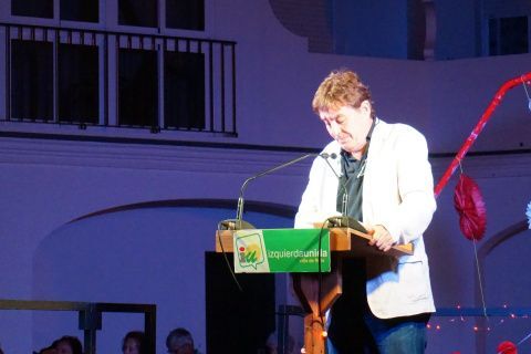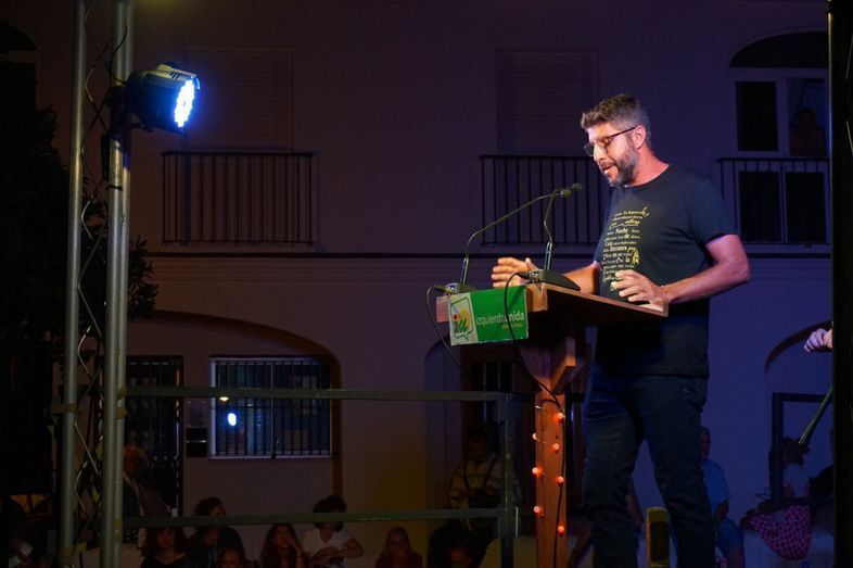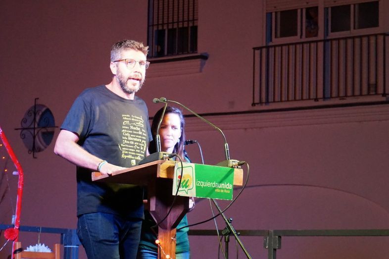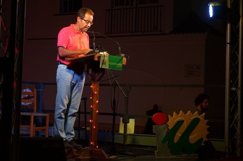 El coordinador de Izquierda Unida, Pedro Pablo Santamaría, fue el encargado de introducir el evento, junto a una compañera de la organización local, para agradecer a los asistentes así como para desear una buena velada a todos los invitados que iban a recitar sus obras, haciendo especialmente hincapie en el esfuerzo que suponía para García Montero y Almudena Grandes poder estar en dicho compromiso teniendo en cuenta que Rota es su lugar de descanso y vacaciones.