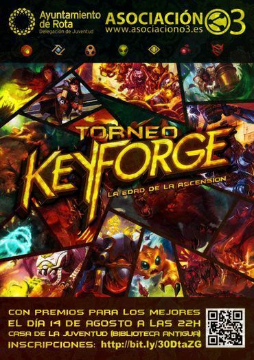 En primer lugar, habrá un Torneo de Keyforge en la Casa de la Juventud (biblioteca antigua) el 14 de agosto, que se jugará según reglas oficiales. Se jugará con la expansión de "La edad de la ascensión". Según explican desde la organización, serán de 40 minutos y se jugarán de 3 a 4 rondas, según número de participantes. 16 plazas, edad mínima 10 años. Imprescindible llevar mazo. La cita comenzará a partir de las 22.00. Habrá premios para los mejores, y las inscripciones se pueden hacer directamente aquí: http://bit.ly/30DtaZG
