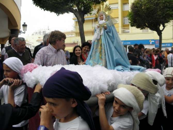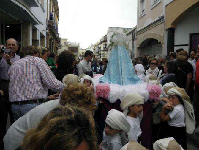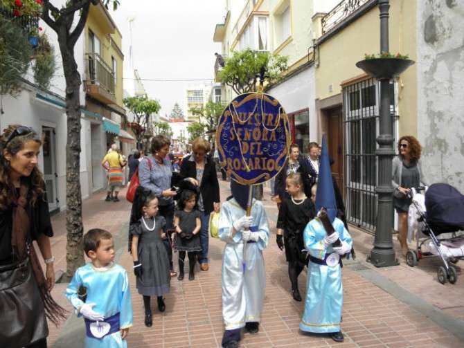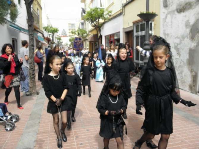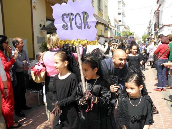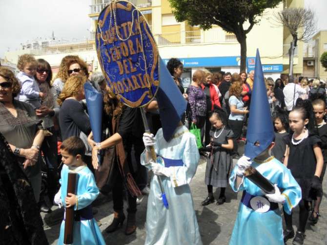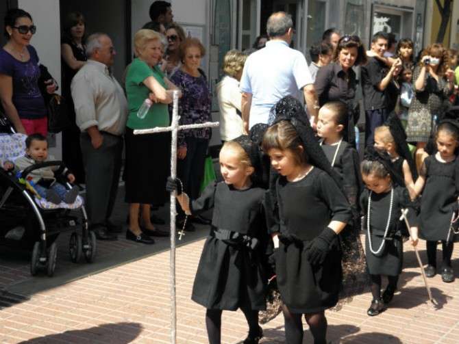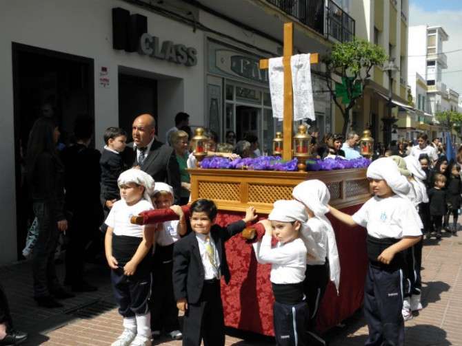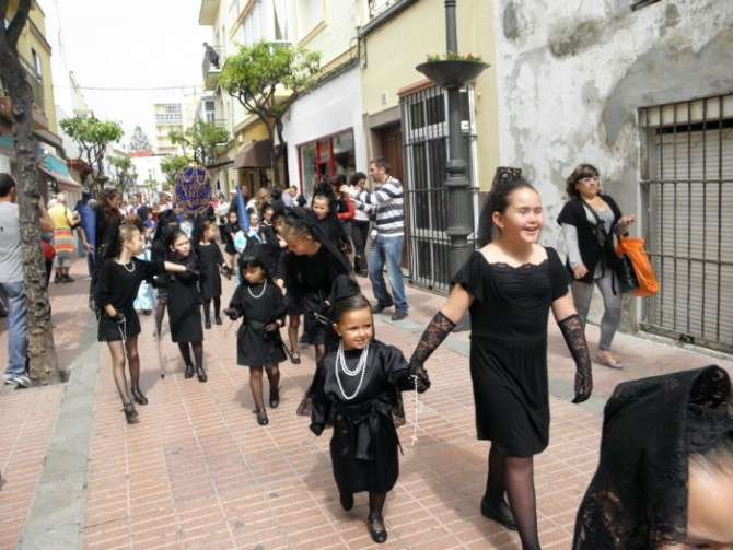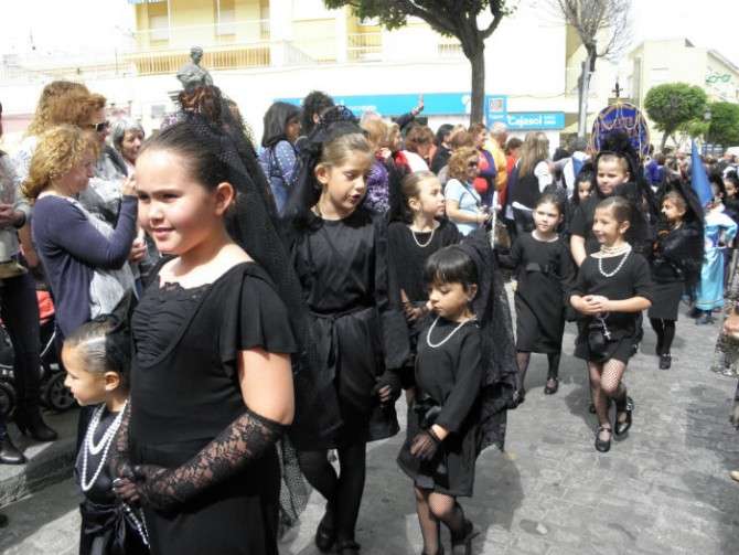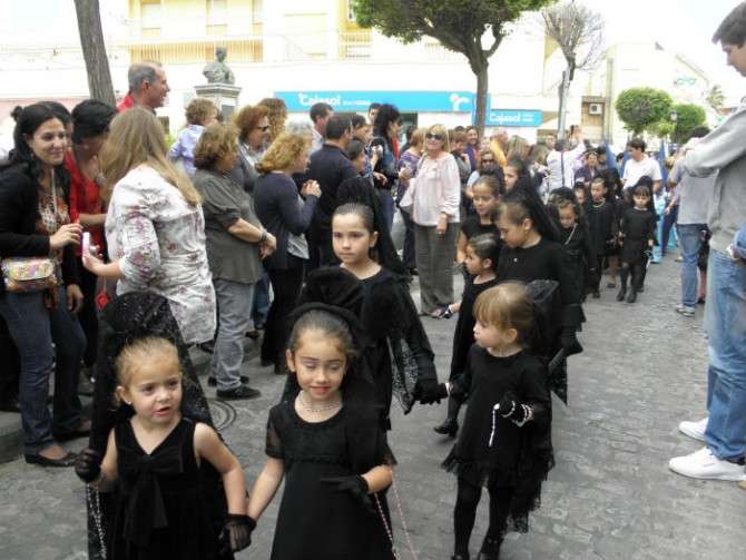 Las calles del centro de la localidad han respirado hoy un particular ambiente de Semana Santa gracias a un peculiar cortejo que no ha dejado impasible a prácticamente nadie. Y es que los alumnos de Infantil y del primer ciclo de Primaria del colegio Nuestra Señora del Rosario han recreado esta mañana una procesión a cuyo cortejo, no le faltaba un detalle.