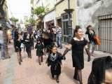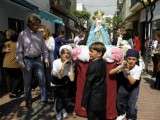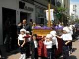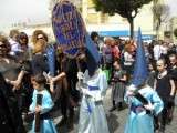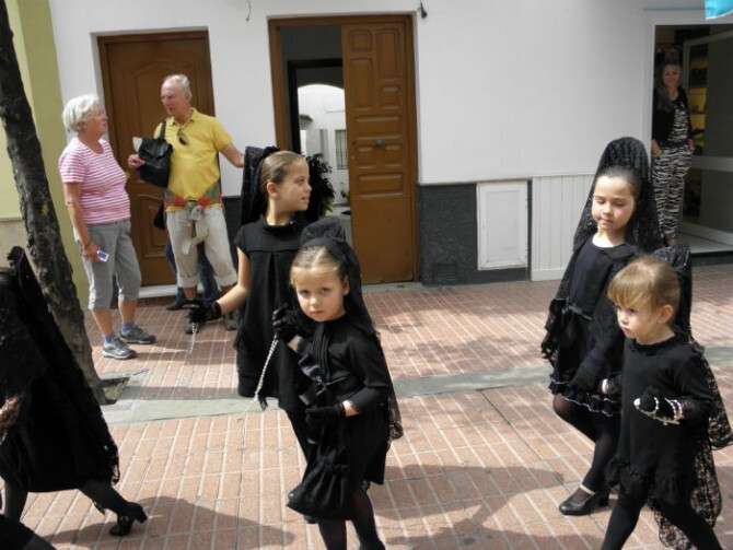En esta peculiar representación de un paso de Semana Santa en la calle, han participado unos 125 niños. Cada uno, según nos explicaba una de las profesoras implicadas en la iniciativa, ha escogido el lugar que quería ocupar dentro del cortejo. Así, las niñas se han decantado en su mayoría por vestir la tradicional mantilla española y hacer de penitente, mientras que ellos, han preferido ser músicos o costaleros. Desde luego, esta pequeña procesión, ha abierto boca para la Semana Mayor que comienza este domingo.
