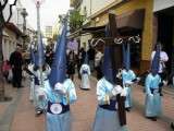 Aunque es habitual que en los centros educativos se realicen diversas actividades relacionadas con la Semana Mayor, casi siempre éstas quedan entre las paredes del colegio. Sin embargo, este año, los profesores de los Salesianos han querido ir más allá y hace algunos meses empezaron a planear la salida de una cofradía muy propia, compuesta por los más pequeños. El resultado ha sido de lo más llamativo y se ha formado tal revuelo en la zona centro que costaba distinguir si han estado más alborotados los padres y familiares de los pequeños que los propios niños. Gracias al trabajo de las madres, que se han afanado en recrear la indumentaria necesaria para hacer esta salida procesional lo más real posible, y a las profesoras, que se han volcado con los preparativos, ha salido adelante una iniciativa que ya se plantea de cara al año que viene dado el éxito obtenido.