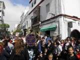 Con el fin de que los alumnos conocieran de primera mano la Semana Santa, el lugar que ocupa cada persona en un cortejo o la dificultad de sacar un paso a la calle con los matices culturales y religiosos que ello conlleva, se ha realizado esta salida procesional en la que no ha faltado ni la Cruz de Guía, ni los penitentes, ni las mujeres de mantilla, los músicos y muchísimo menos, los costaleros con sus correspondientes capataces para cargar los dos pasos que componían el cortejo.