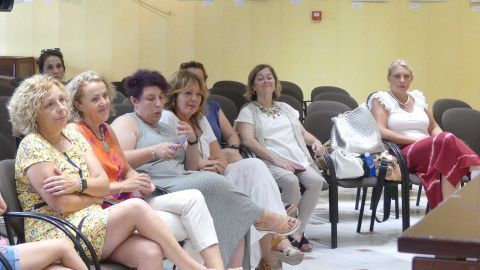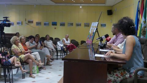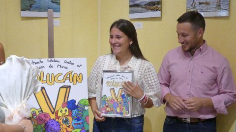 La presentación del cartel ha terminado con la entrega de un detalle a Carmen Blázquez como autora del cartel a quien Rolucan ha entregado su obra enmarcada, un ramo de flores y un detalle.