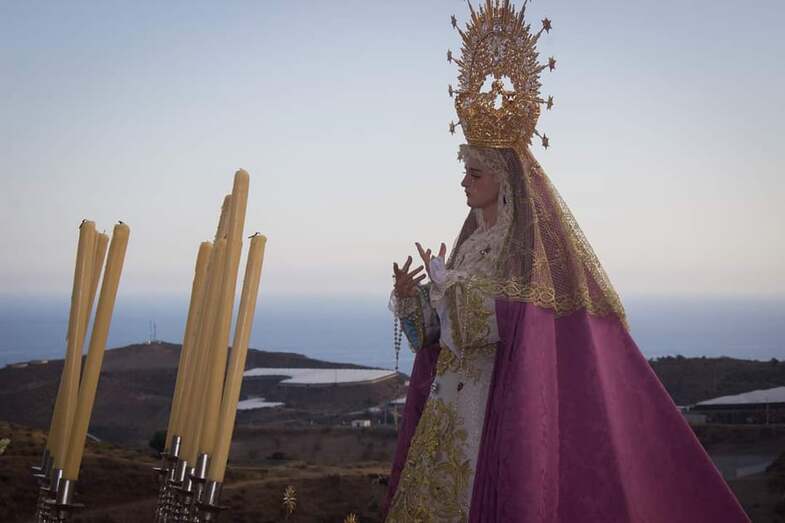 [Img #120804]Con el título de "Inmaculado corazón", ha presentado este fin de semana el joven roteño Jonathan Alonso el cartel que ha elaborado para anunciar la romería de la Hermandad del Inmaculado Corazón de María de Torreblanca (Sevilla), que le encargó a este escultor imaginero la tarea.