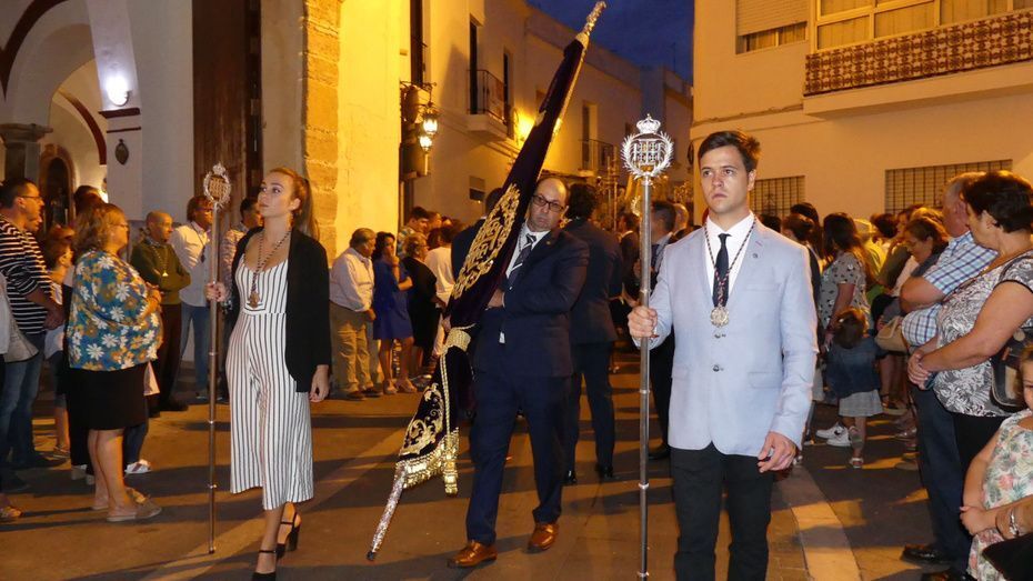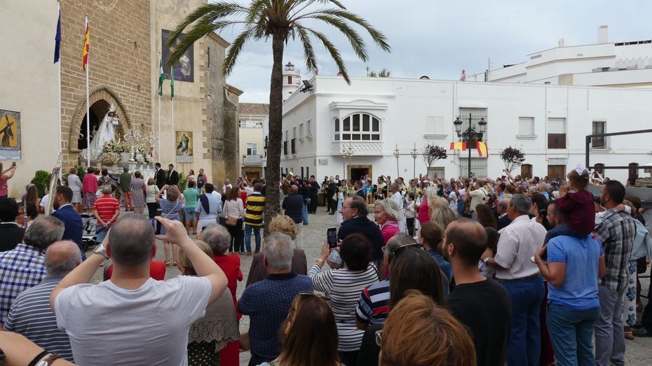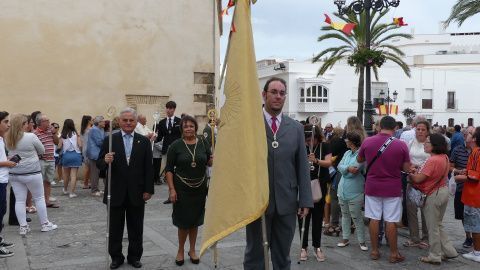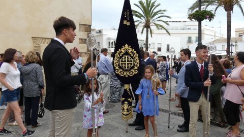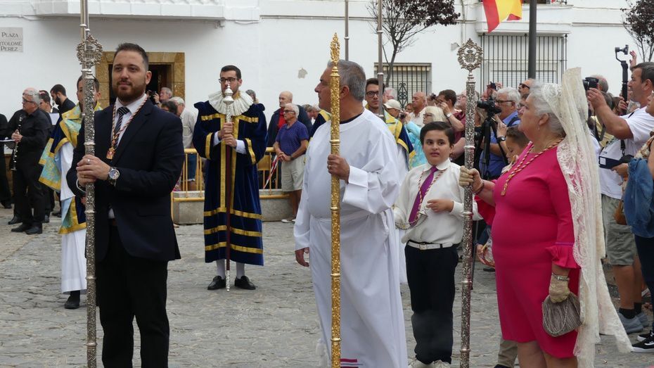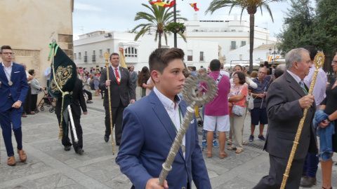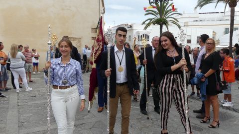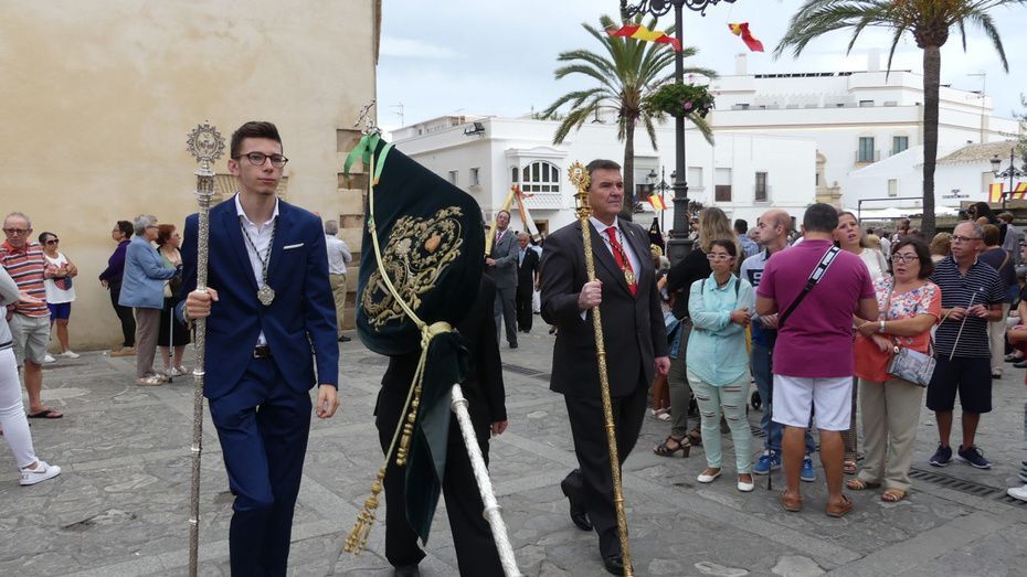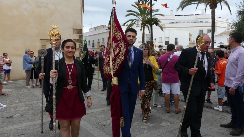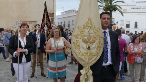 Con un cortejo compuesto por representantes de varias hermandades, hermanos de la agrupación parroquial, mujeres de mantilla y acólitos, la Merced abría las puertas de la parroquia de Nuestra Señora de la O donde a su salida, la esperaban muchos ciudadanos, roteños y también visitantes que aún disfrutan los fines de semana de su estancia en la localidad.