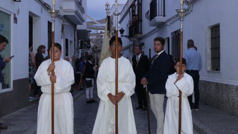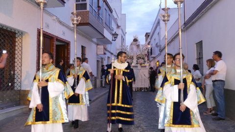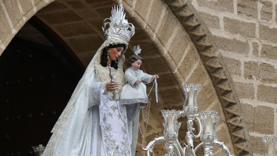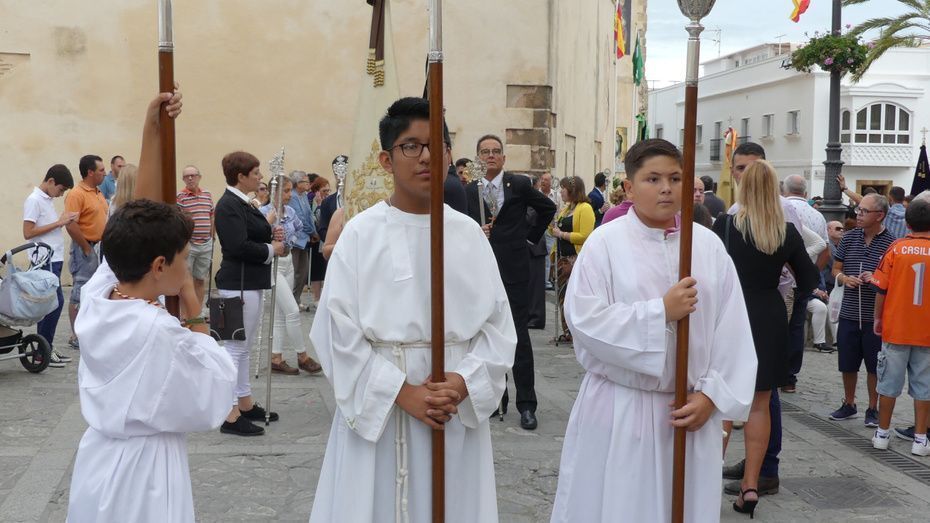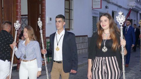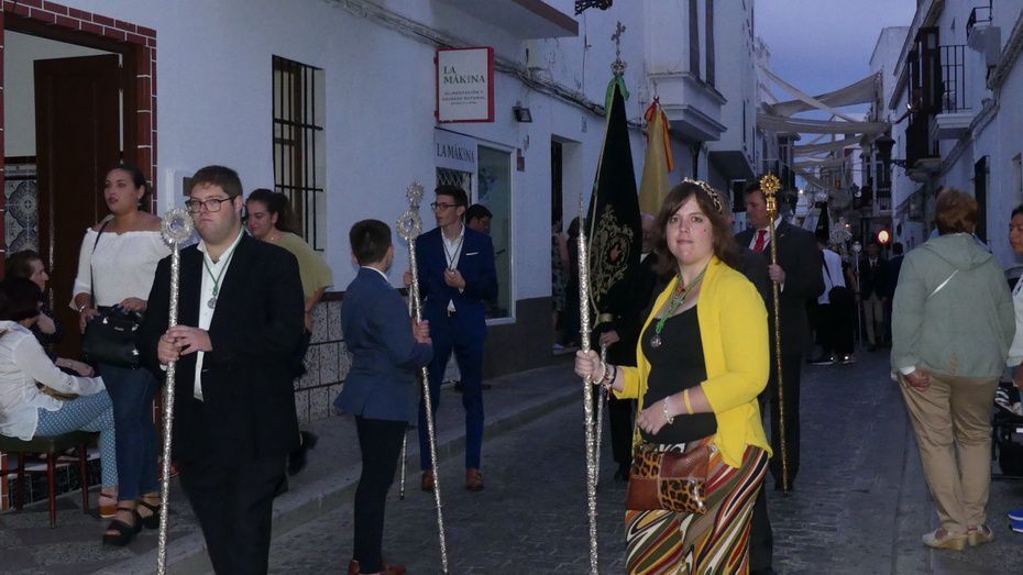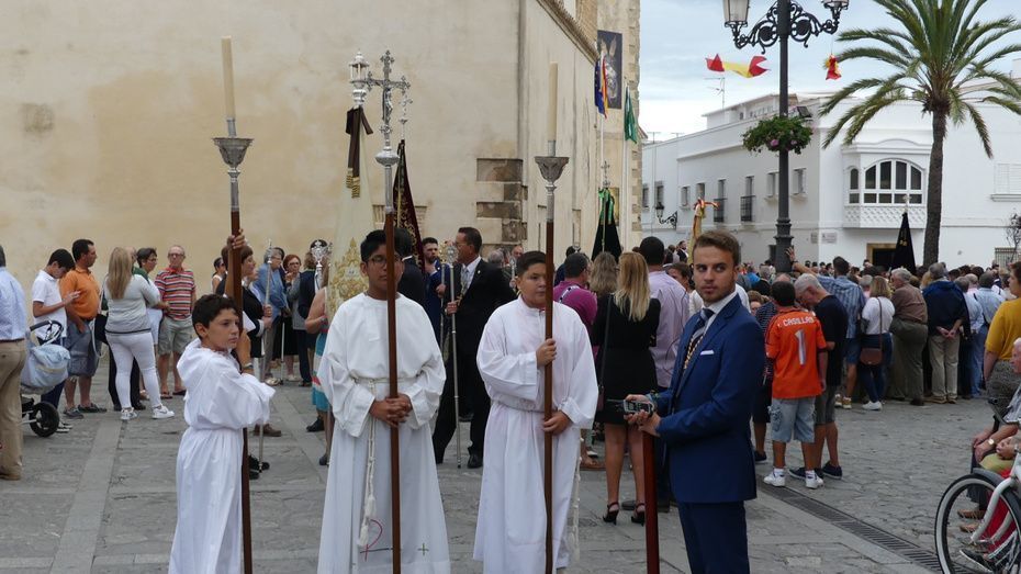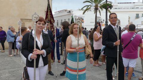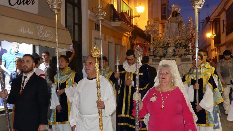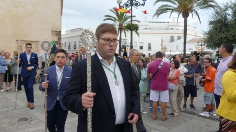 Con un cortejo compuesto por representantes de varias hermandades, hermanos de la agrupación parroquial, mujeres de mantilla y acólitos, la Merced abría las puertas de la parroquia de Nuestra Señora de la O donde a su salida, la esperaban muchos ciudadanos, roteños y también visitantes que aún disfrutan los fines de semana de su estancia en la localidad.