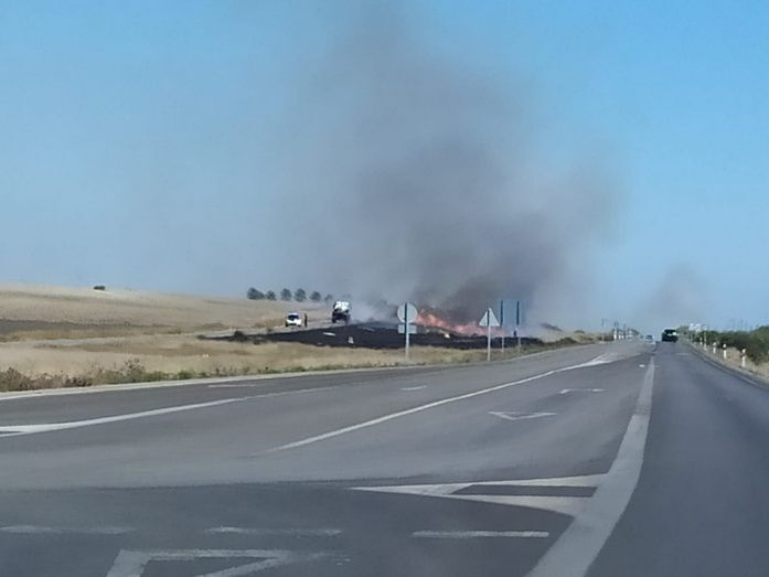 Protección Civil de Rota está actuando en estos momentos en varios incendios a la vez, todos localizados en la A-491 a la altura de la gasolinera "Las Marismas". Hasta cuatro focos están activos desde ese punto hasta la rotonda del cruce de Jerez, lo que está provocando una gran humareda al paso por esta carretera ya que las llamas se han desatado en la zona de cunetas.