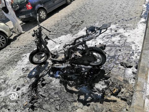 Arde una moto en plena calle Calvario
