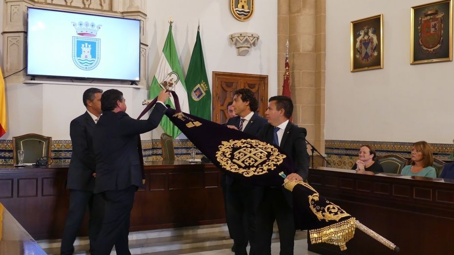 Representantes de las dos hermandades han subido a recoger esta distinción y la colocación de la medalla en el estandarte que las representa y el corbatín. Tanto Aníbal Villalba Puyana, teniente de hermano mayor del Nazareno, como el hermano mayor del Rosario, Juan Antonio Díaz Romero, han dado las gracias a la Policía Local por este gesto con el que vienen a reconocer la vinculación y estrecha relación que existe entre las partes. Rota no se entiende sin su Nazareno y sin la patrona, alcaldesa honoraria de la villa, por lo que es lógico que ambas hermandades reciban y abran paso a esta nueva condecoración que la Policía Local entregará coincidiendo con el día de su patrón. Los representantes de las dos hermandes quisieron además poner en valor el trabajo de los agentes municipales en la calle y el servicio que prestan así como el trabajo altruista que durante años han hecho personas que han llevado a las entidades que representan a la actualidad.