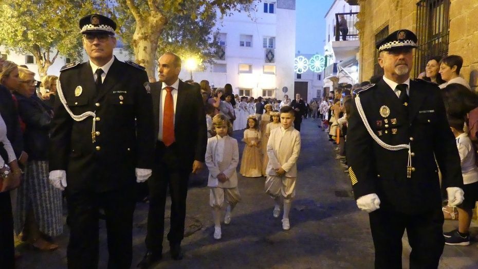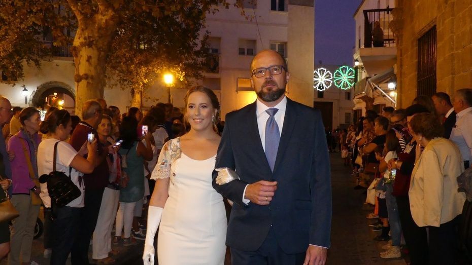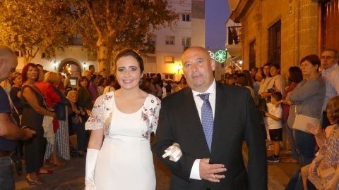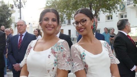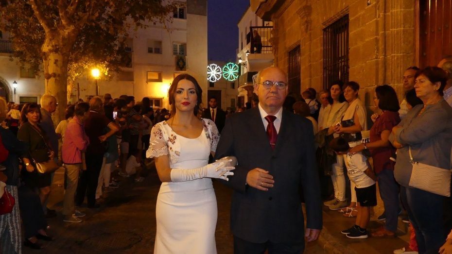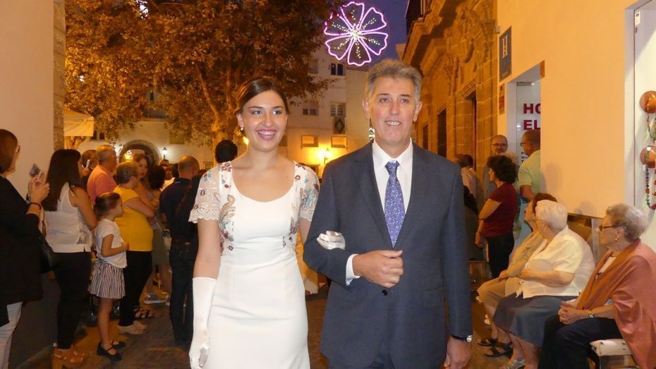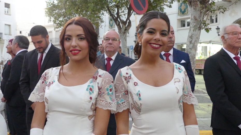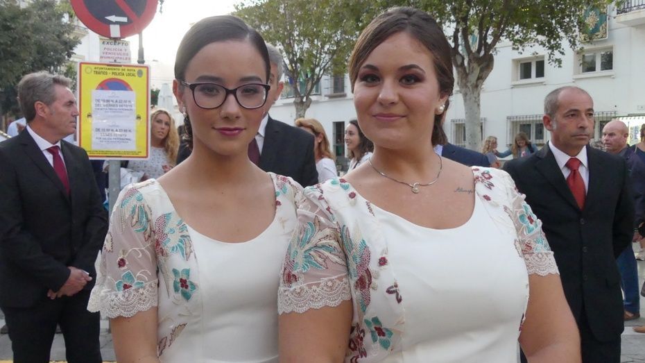 En las escalinatas del Castillo de Luna les esperaban los miembros de la Corporación municipal, con el alcalde de Rota, Javier Ruiz a la cabeza, que, junto a la delegada de Fiestas, Laura Almisas, fueron recibiendo y saludando una a una a las damas del Rosario y sus acompañantes momentos antes de que se iniciara el acto de elección y posterior coronación de Carmen Martín-Niño García, elegida dama mayor 2019.