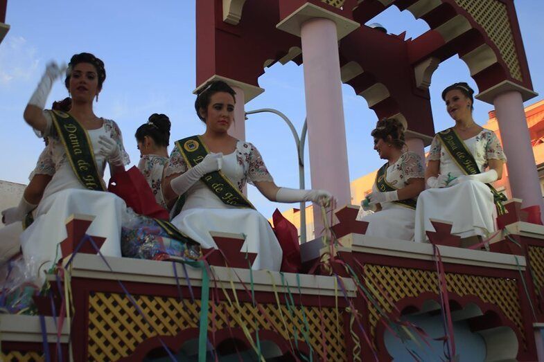 Una ambientada y animada cabalgata, presidida por la dama mayor de las fiestas patronales, Carmen Martín-Niño García, y su corte de honor, fue la protagonista de la tarde del sábado, segundo día de celebración para los roteños que hasta el lunes celebrarán el día de su patrona, Nuestra Señora del Rosario.