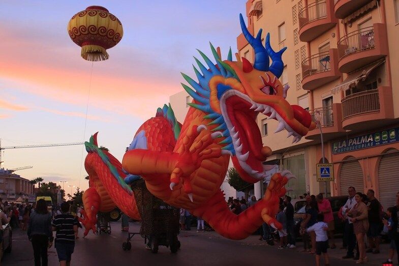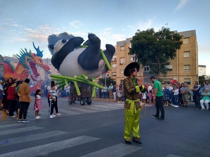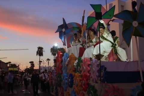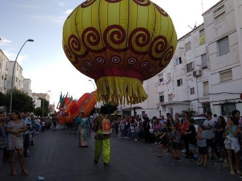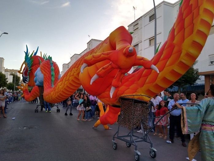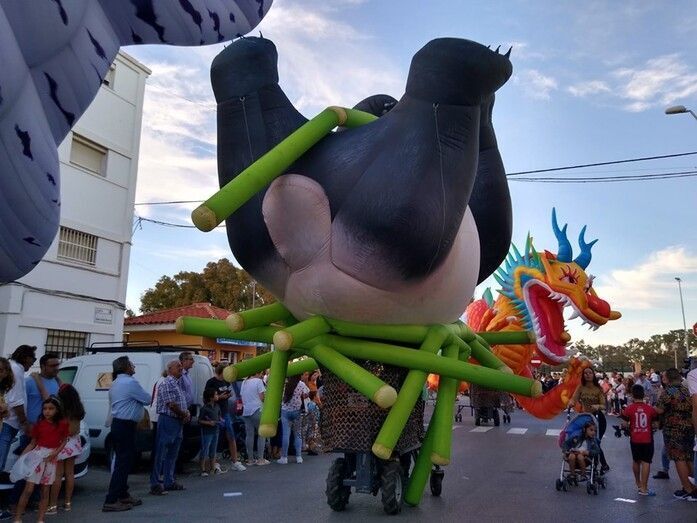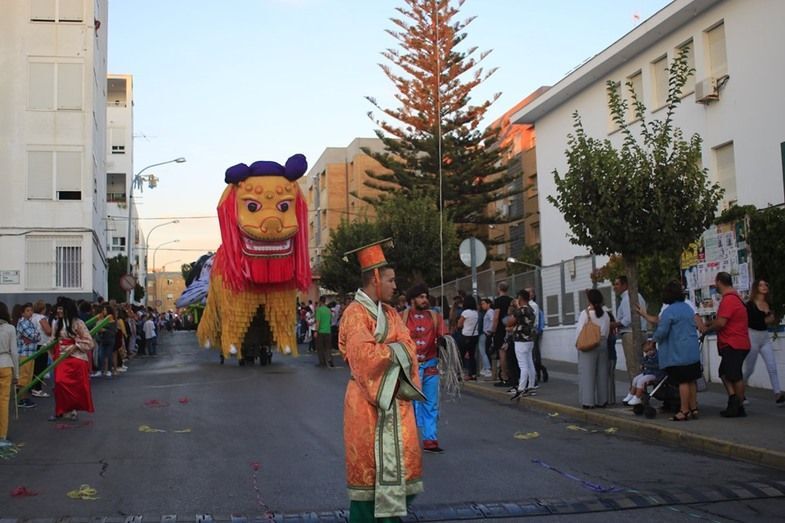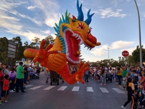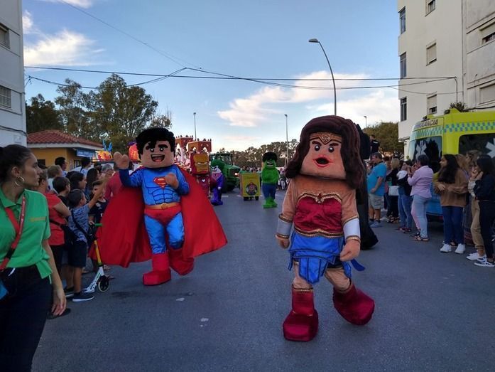Los Lego Vengadores, con Spiderman, Hulk, Ironman, Batman, Wonder Woman, Superman y otros tantos, abrían la comitiva precedida por la banda de música. Era el primer impacto para los niños que pudieron fotografiarse con estos superhéroes tan de moda e incluso bailar con ellos. Pero no era el único atractivo de esta cabalgata en la que se pudo ver también un inmenso dragón que sobrevolaba las cabezas de todo el público, varios motivos chinos, personajes de animación en zancos dándoles una dimensión espectacular a vista de los menores, grandes animales hinchables, princesas de cuento como Blancanieves o Cenicienta, y otros tantos personajes, incluyendo en algún caso alguna pirotecnia que sirvió para animar el cortejo que protagonizaban la dama mayor del Rosario, Carmen Martín-Niño, y sus pajes así como el resto de 28 damas repartidas en cuatro carrozas que lanzaron serpentinas para dar color a las calles y animar al público que esperaba a pie de calle disfrutar con esta Gran Cabalgata que desfiló durante algo más de tres horas por calles y avenidas repletas de gente.