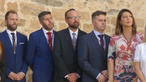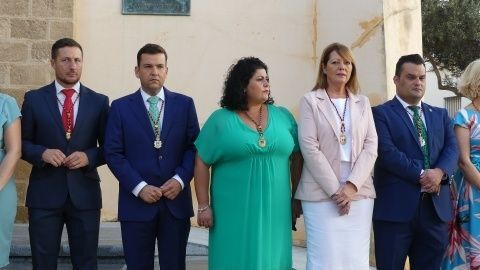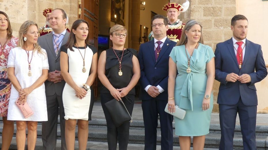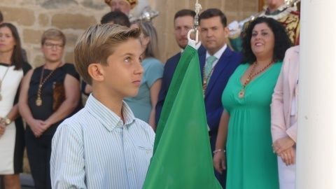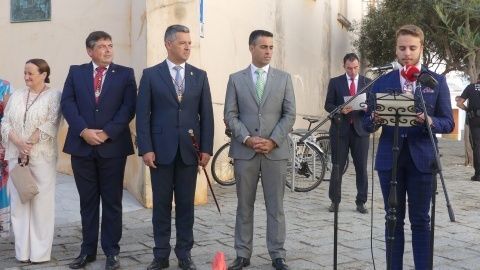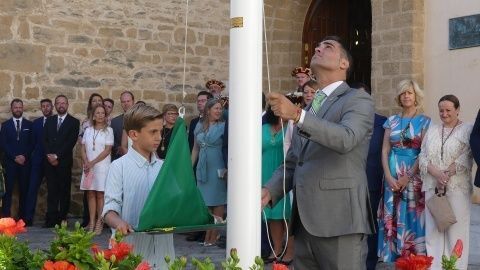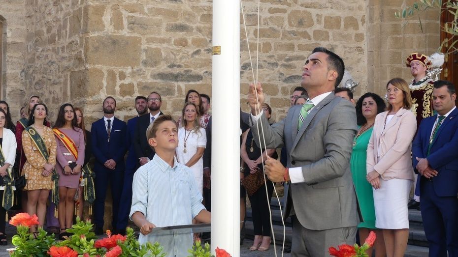 Una vez leídas las dos redacciones, ambar dejando claro el amor por Rota de sus autores, se procedió a la izada de la bandera de Rota. En este caso, el protagonismo lo tomaron el exaltador de las fiestas patronales, Rafael Ruiz-Henestrosa, y el estudiante Antonio Vides. Ambos izaron la insignia que ondeará en estos días señalando que Rota está de fiesta.