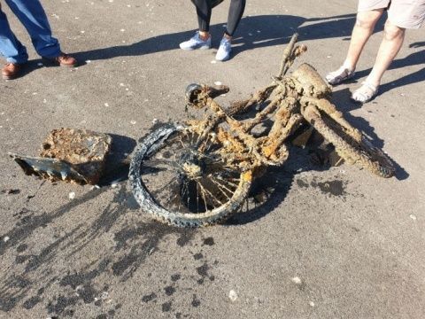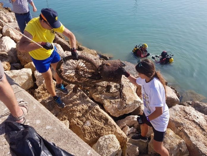 Hay que destacar que en este punto en particular es el cuarto año consecutivo que se organiza esta limpieza de fondos marinos y cada año se va actuando en una zona más específica, sin embargo, se ha vuelto a llenar un contenedor entero de basura procedente del espigón y basura submarina. Entre los residuos se encontraron dos bicicletas, dos conos de tráfico, dos ruedas, un ancla, el plafón de una farola y multitud de redes. Por otro lado, los voluntarios de tierra encontraron una cartera con documentación y tarjetas de crédito de una ciudadana americana, que se entregó a la Policía Portuaria, quien al ir a entregarla al control de la Base Naval se encontró a su propietaria denunciando la pérdida de la misma.