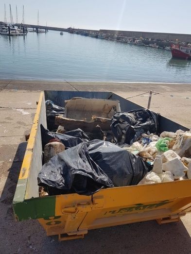 Para esta actividad, el puerto de Rota, perteneciente a la APPA (Agencia Pública de Puertos de Andalucía) proporcionó un contenedor de basura que se llenó por completo con todo lo sacado tanto del lecho marino, como de las zonas exteriores aledañas al puerto de Rota.