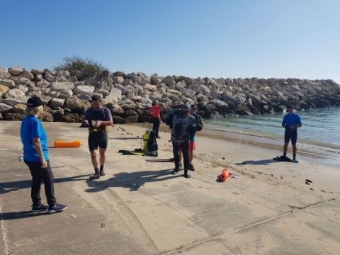 En Rota, más de 40 voluntarios del Club de Buceo Capitán Garfio y del Club Náutico Rota, además de voluntarios venidos de otros puntos de la bahía gaditana, han participado en esta jornada de limpieza marina, en la que se contó con cinco expertos buceadores para la limpieza submarina.