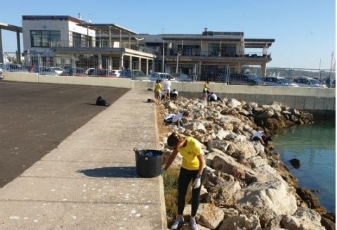 En este caso, la zona de actuación fue el puerto deportivo de Rota, concretamente, la rampa del puerto pesquero junto a la lonja, donde se limpiaron los fondos, y toda la zona de espigones del puerto pesquero y el muro de contención exterior del puerto de Rota, donde los voluntarios de tierra limpiaron su parte exterior.
