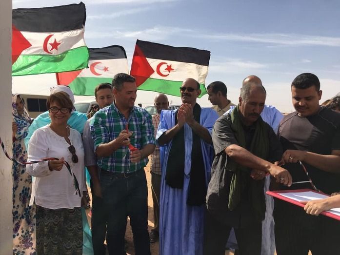 El alcalde de Rota y la presidenta de la asociación Roció Helices, junto a las autoridades saharauis y la expedición gaditana que desde el pasado martes está en el Sáhara, han inaugurado las dependencias públicas ante el Consejo de la Daira. Javier Ruiz Arana ha destacado la admirable labor de la asociación roteña "Sáhara Libre", a través de los 25 años de cooperación en los campamentos.