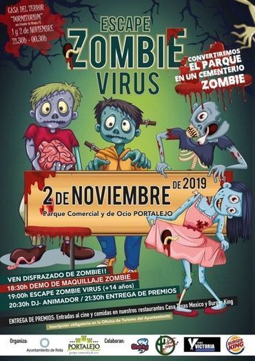 Además, los que participen en la competición disfrazados de zombie y que previamente se hayan inscrito en la oficina de turismo de Rota, podrán participar en la entrega de premios con entradas al cine y comidas en los restaurantes Casa Texas Mexico y Burguer King. La iniciativa del Escape Zombie está impulsada por Portalejo y el Ayuntamiento con la colaboración de Sharky.