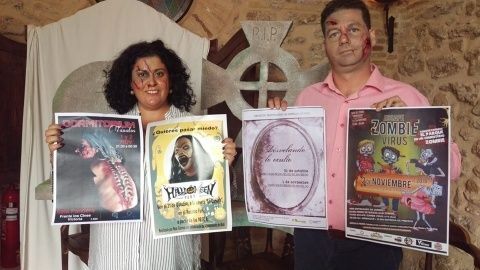 El delegado de Comercio y Juventud, Juan Marrufo, y la delegada de Fiestas, Laura Almisas Ramos, caracterizados para la ocasión, han sido los encargados de presentar estas actividades que contarán con la colaboración y participación de varias entidades y empresas de la localidad como Creador de Miedo FX, Bombastic Teatro, Parque Comercial y de Ocio Portalejo y Rosi Correa.
