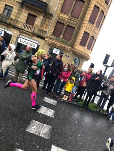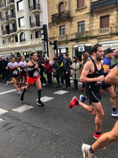 Tras 20 duros kilómetros entre los que se incluyen tres pronunciadas ascensiones, los cuatro deportistas pudieron alcanzar el arco de meta situado en pleno Bulevar Donostiarra, en el corazón de la capital guipuzcoana.